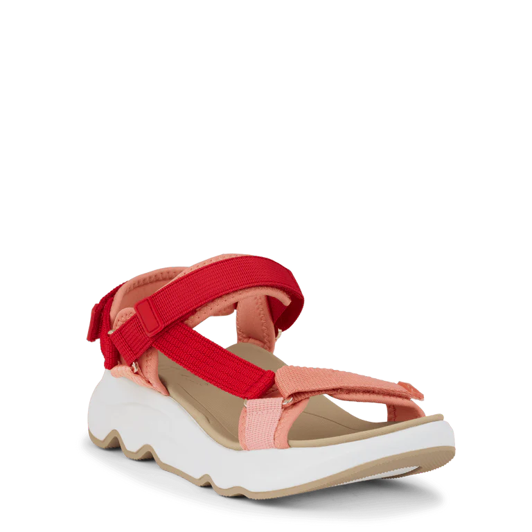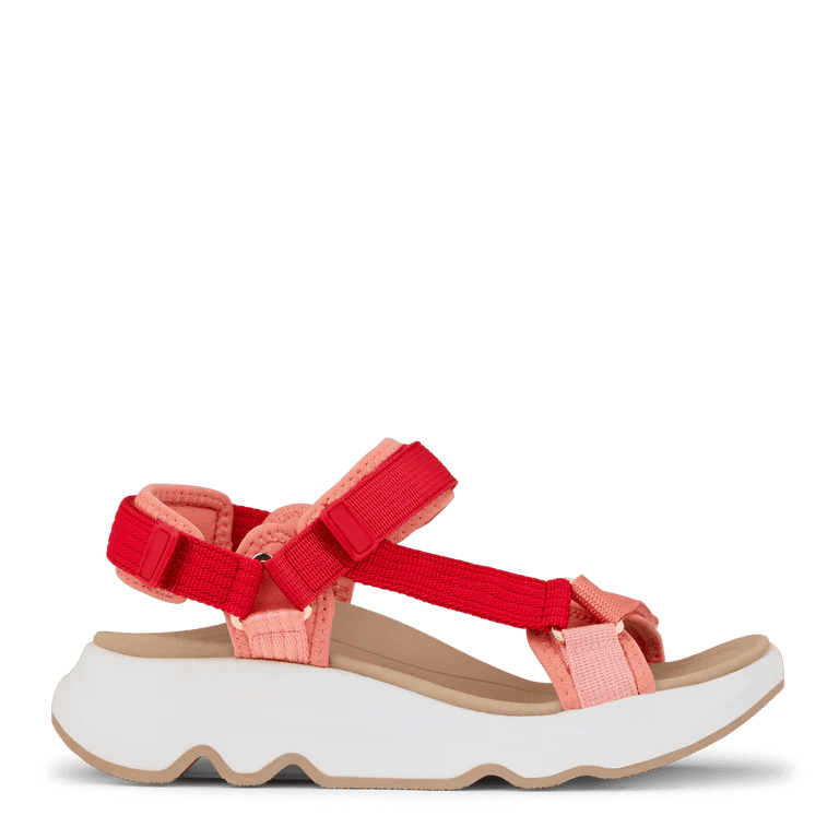 Green Comfort damesandal i vævet tekstil og veganske materialer, som giver en let og luftig komfort til varme dage. De justerbare velcroremme over vristen og ved hælen gør sandalen nem at tilpasse, hvis du har brug for en mere fleksibel pasform.