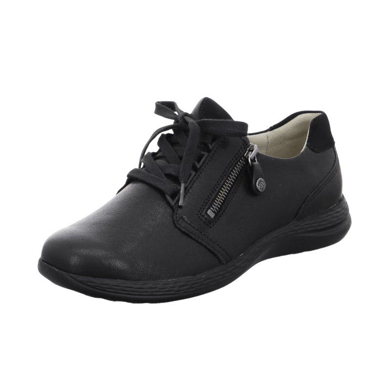Schwarzer Fidelio Sneaker mit einem Obermaterial aus Leder und Multi-Stretch für optimalen Komfort, Haltbarkeit und Flexibilität. Der Schuh hat Schnürsenkel und einen seitlichen Reißverschluss und ist für den Alltagsgebrauch geeignet.